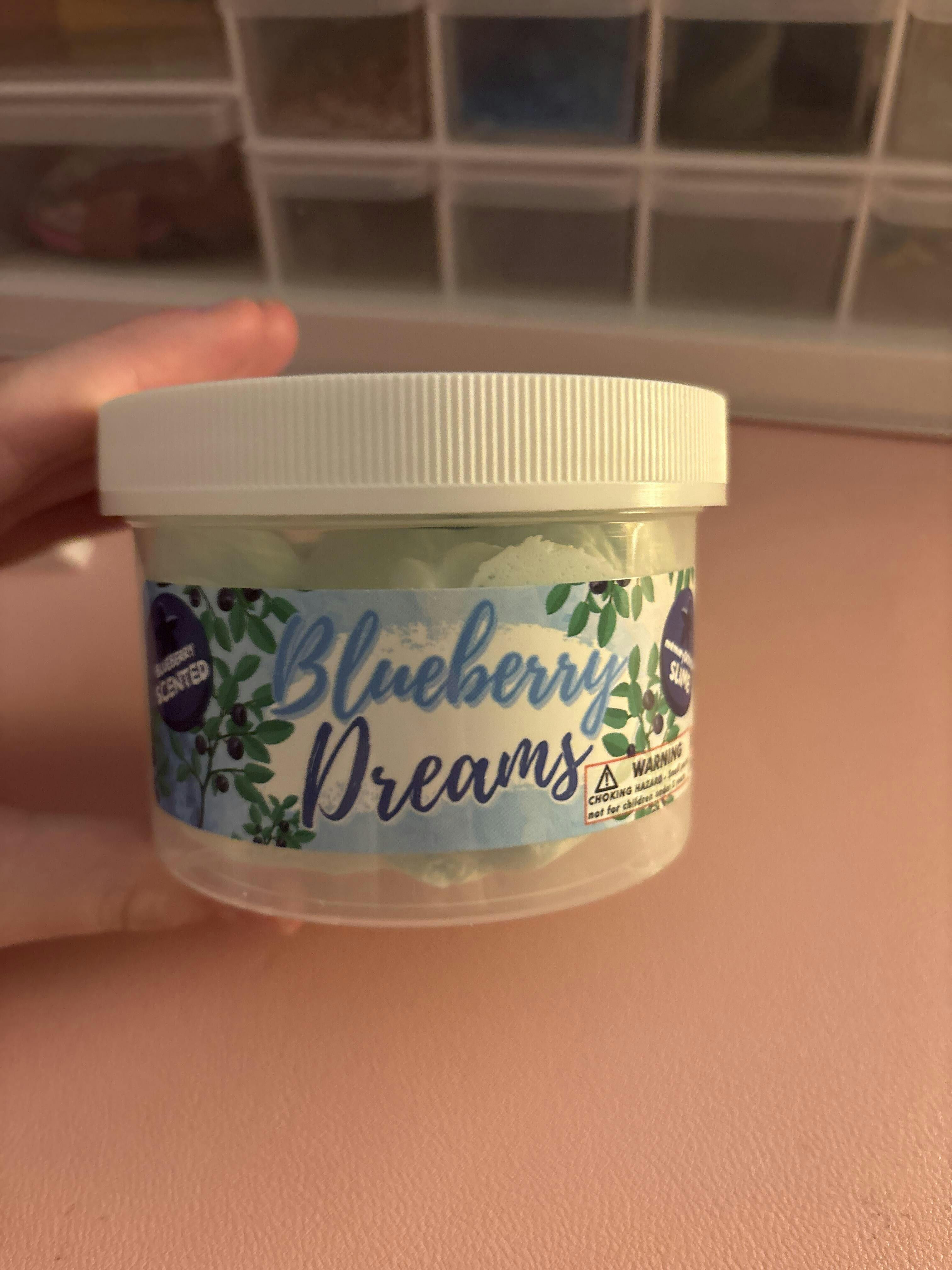 Blueberry dreams is a light baby blue memoryDOUGH slime! scented just like delicious blueberry cheesecake and has our exclusive doughy, moldable yet inflating texture! such a pretty color and topped with a fake blueberry charm, and now includes blueberry fimos!