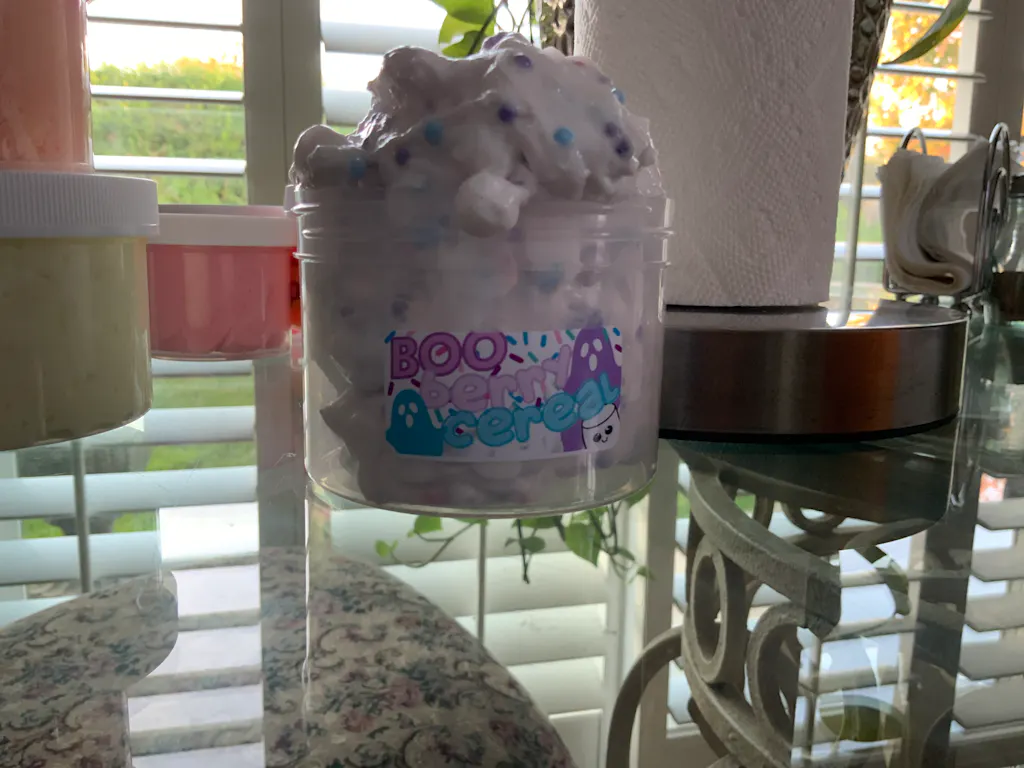 A crunchy full floam with marshamallow beads & colored small beads! Great for any texture or sound lover and scented just like berry cereal, a delicious blend of scents! Topped with mixed berry cream sprinkles.