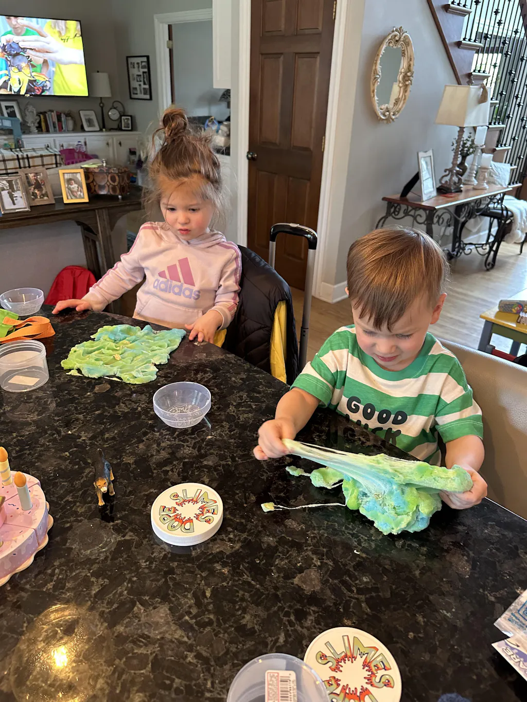 i bought this for my two grandchildren and it was a hit from the start. Putting in their “sprinkles” was really nice for them and finding the one plastic dino was fun too and it smells good!