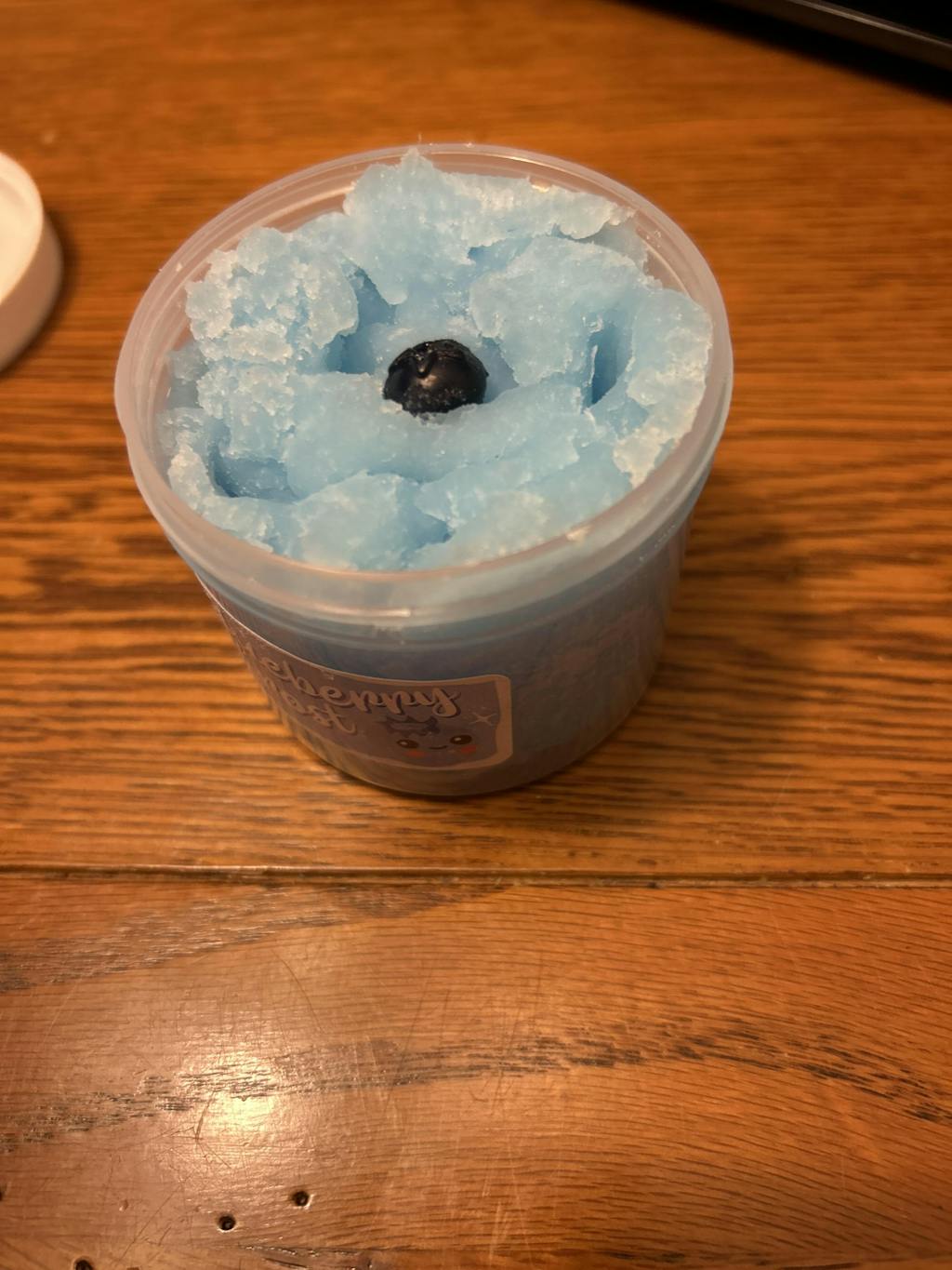 white & blue icee slime! this icee textured slime is so soft & smells just like a blueberry dessert! Dense yet fluffy and cloud like texture & topped with a blueberry charm!