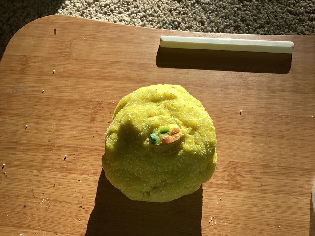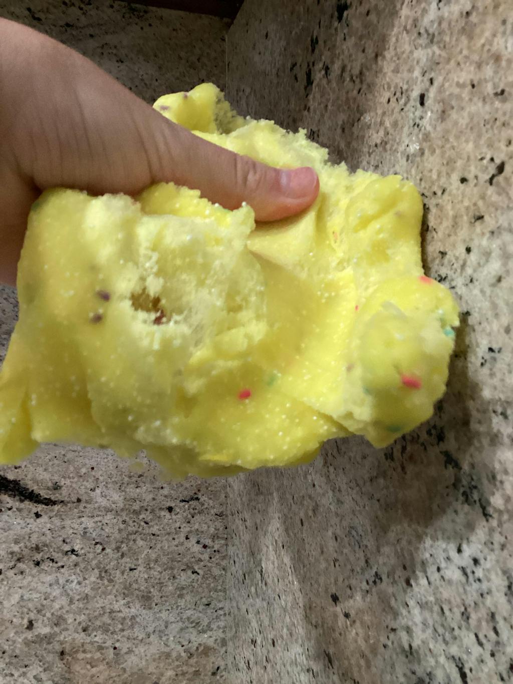 new limited edition easter themed microDOUGH slime! ultra bright yellow creation with our exclusive, unique texture that your won’t be able to put down! Scented like lemon squares (a delicious lemon bakery scent) and topped with a themed sprinkle mix!