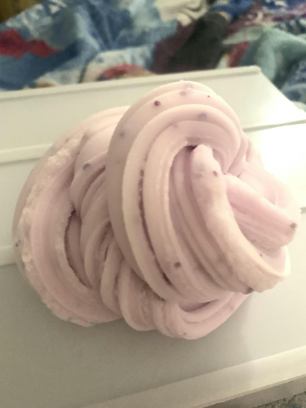 This 8oz icee slime is a beautiful pastel purple, topped with purple holographic moon and octagon glitters. Scented sweet sugar with a hint of lavender.